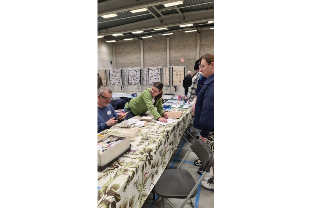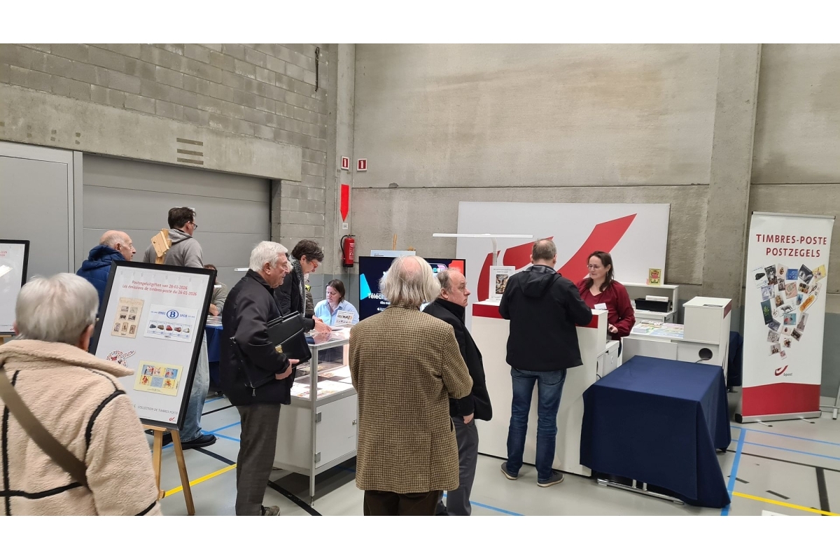 Aan de stand van bpost (Foto R. Vertongen) | Voorverkopen bpost (foto R. Vertongen) | Deel van de ruilbeurs (Foto R. Vertongen) |