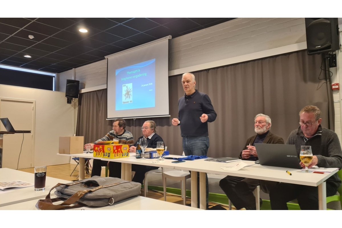 Deel van de ruilbeurs (Foto R. Vertongen) | Omkaderende fototentoonstelling (Foto R. Vertongen) | Algemene Vergadering Themaphila (Foto R. Vertongen) |