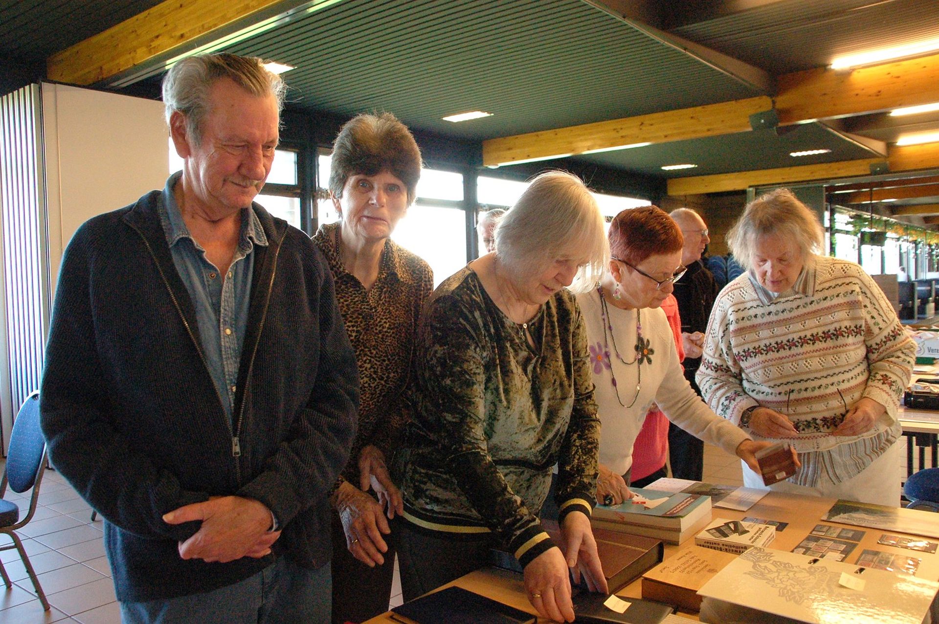 Ons lid S. Dierckx vond men bij de standhouders in de ruilbeurs waar ze uitpakte met een uitgebreide filatelie- en materiaalstand.