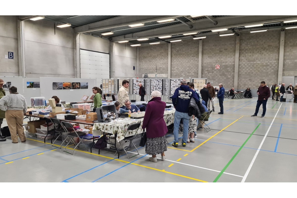 Aan de stand van bpost (Foto R. Vertongen) | Voorverkopen bpost (foto R. Vertongen) | Deel van de ruilbeurs (Foto R. Vertongen) |