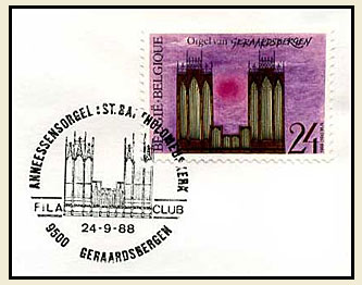 De postzegel en afstempeling, die de loep op Geraardsbergen wierpen, zetten de schijnwerper op het kerkorgel uit de Sint Bartholomeumskerk van Geraardsbergen.